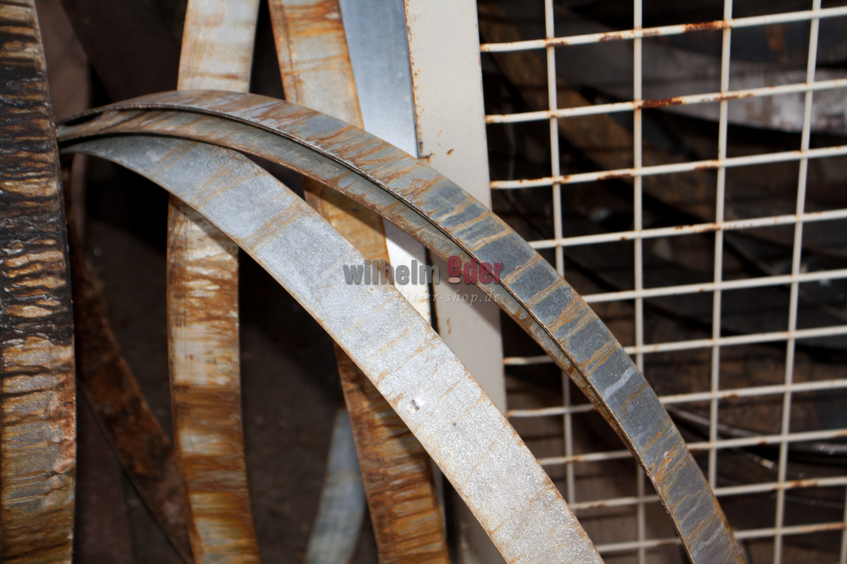 Anciens cercles en métal. Les cercles montrent de la rouille faible ou forte et rapellent le charme du passé. Idéal comme décoration dans le jardin ou le bar à la cave. De plus les bricoleurs peuvent s'amuser avec ces cercles.