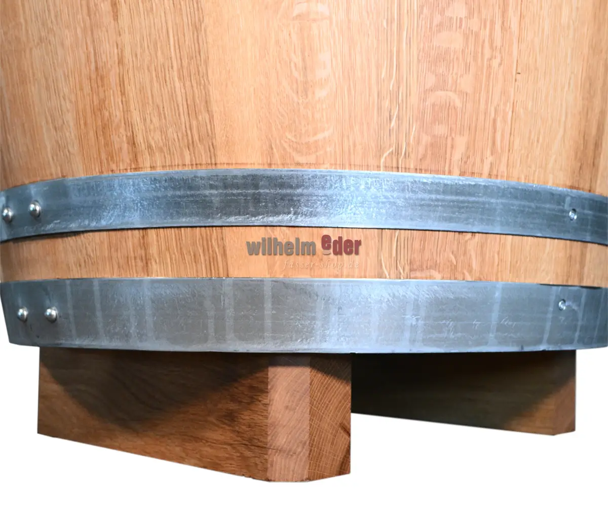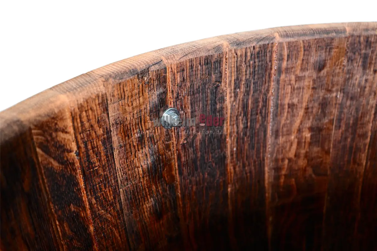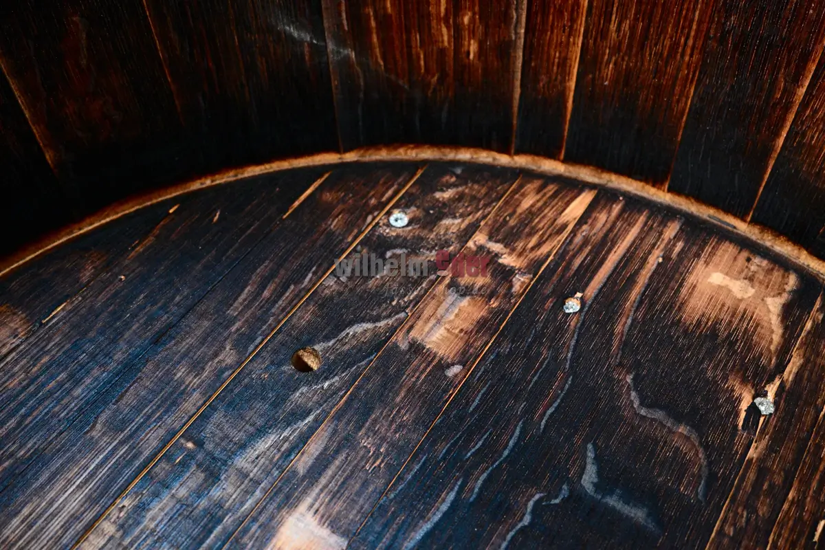 Les douves sont dressées selon la tradition des tonneliers et transformées en cuves. À l'intérieur, les cuves sont entièrement calcinées. À l'extérieur, le traitement à l'huile leur confère un éclat mat et soyeux.