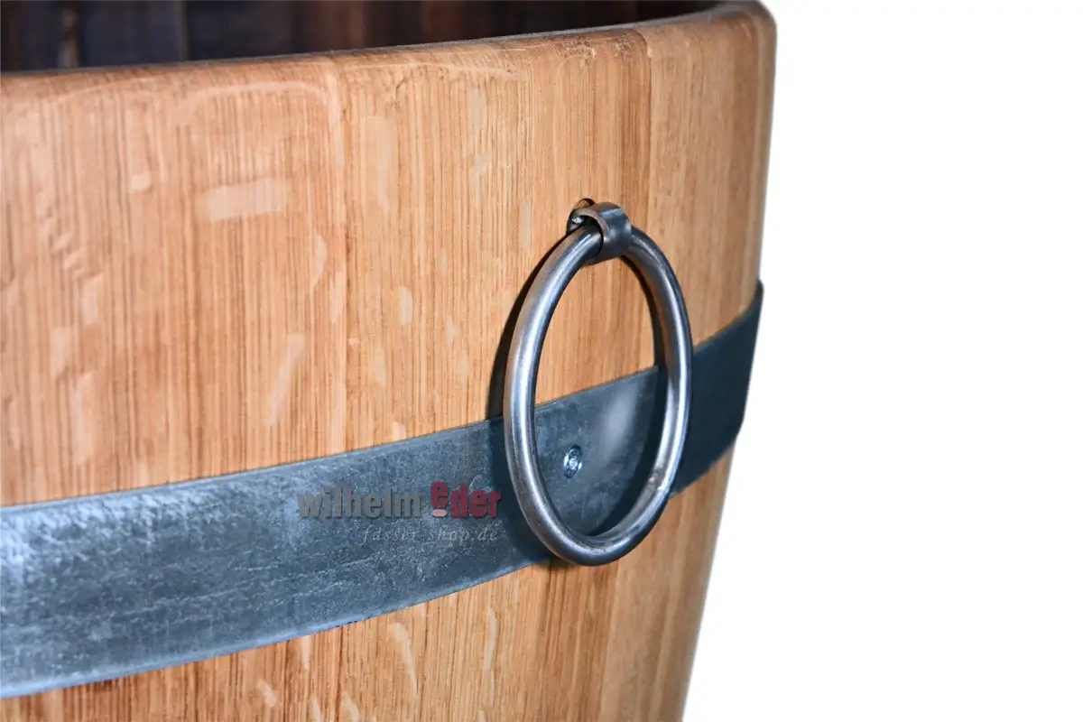 Bac de 120 l avec anneau métallique en guise de poignée.
