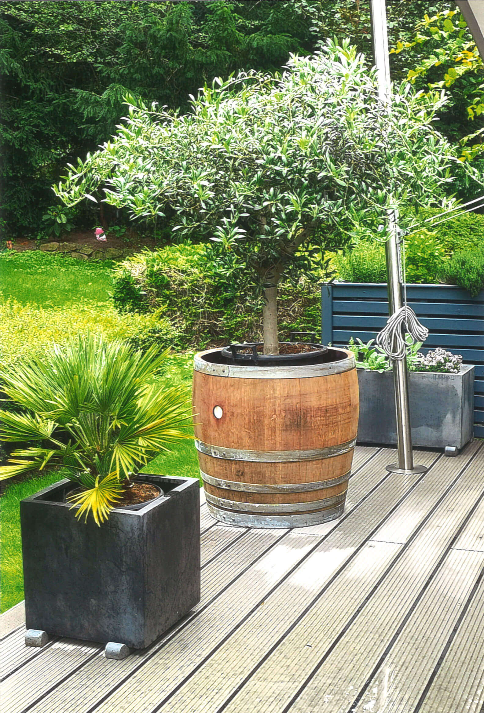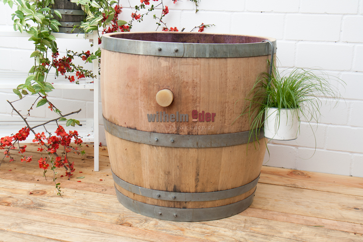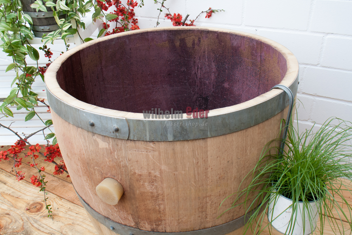 Idéal pour des plantes ou arbrisseaux plus grandes. Les cuves sont coupées de tonneaux de chêne anciens, remplis avec vin de rouge et de bonne substance. Les cuves sont denses et ainsi aussi approprié pour des petits étangs. Le bandage est galvanisé à chaud, le pneu final au fond du tonneau peut aussi être des pneus de bois de pâturage.