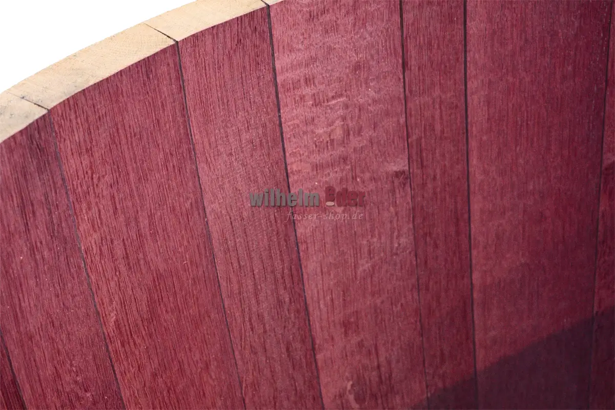 Le bac est taillé dans une ancienne barrique de vin rouge claire de 600 litres.