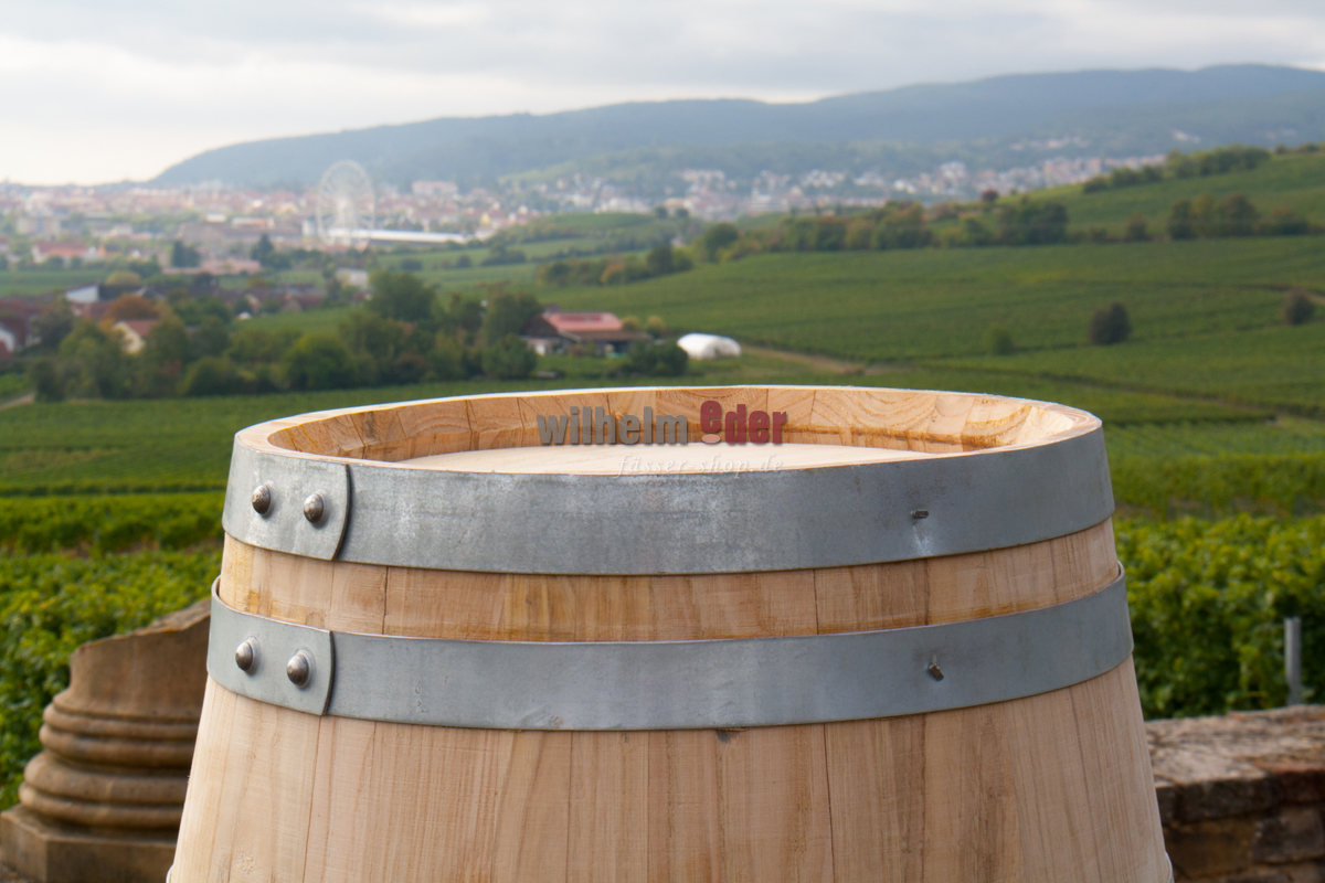 Nous produisons chaque plateau de table individuellement dans notre tonnellerie. Nous nous procurons les grumes dans la région de la forêt du Nordvogesen/Palatinat.  Les plateaux de table sont en bois carré massif, rainurés et collés, et les bords sont chanfreinés. Si vous le souhaitez, le dessus peut être traité à l'huile de lin pour lui donner un éclat mat et soyeux.Trois petits blocs de bois sont fixés sous le plateau de la table, ce qui permet de la placer sur un tambour de 225 l.Le bois est un produit naturel, les fortes variations de température, l'air sec ou chaud, l'humidité, etc. peuvent provoquer le gauchissement de la planche. Veuillez en tenir compte lors de l'utilisation ou du stockage de la planche.En option, nous personnalisons le plateau de table avec votre marque laser individuelle.Des grains et des formes de croissance naturels et individuels assurent l'exclusivité de nos produits.