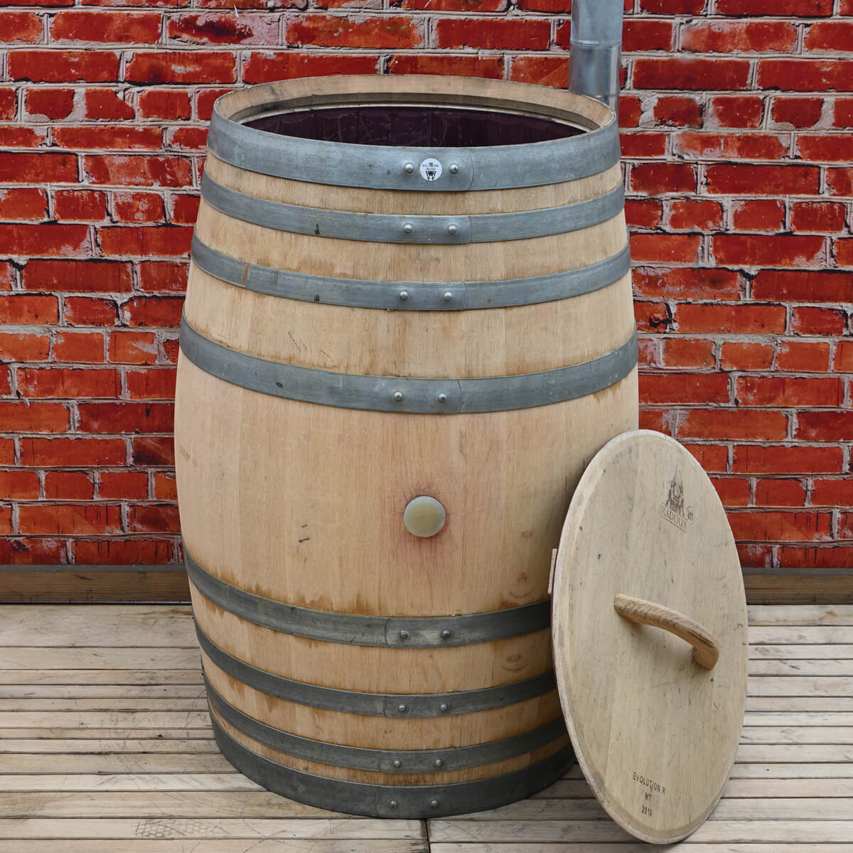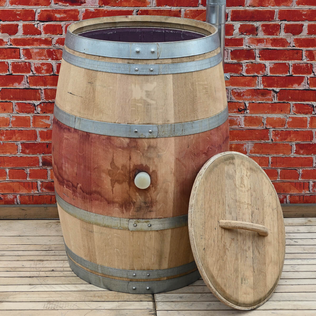- Description Tonneau de pluie fabriqué à partir d'une barrique usagée en bois de chêne clair avec des cercles noirs ou galvanisés. Le co… Plus