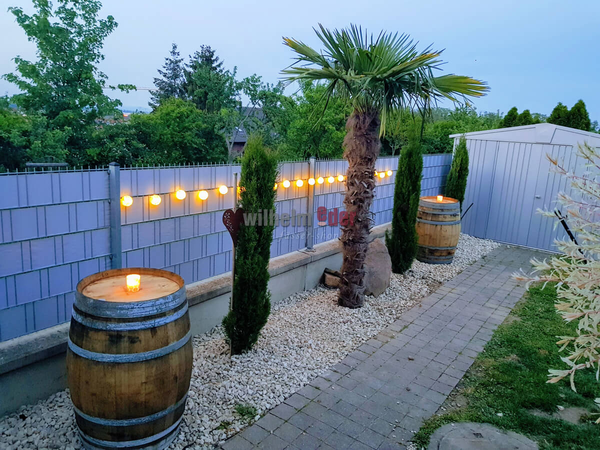 Lors du choix de l'emplacement, veuillez tenir compte du fait que, dans certaines circonstances, il peut y avoir un lessivage des tanins ou des résidus de l'élevage préalable. Si vous avez des questions sur l'emplacement de votre tonneau décoratif, nous nous ferons un plaisir de vous conseiller et de vous aider.