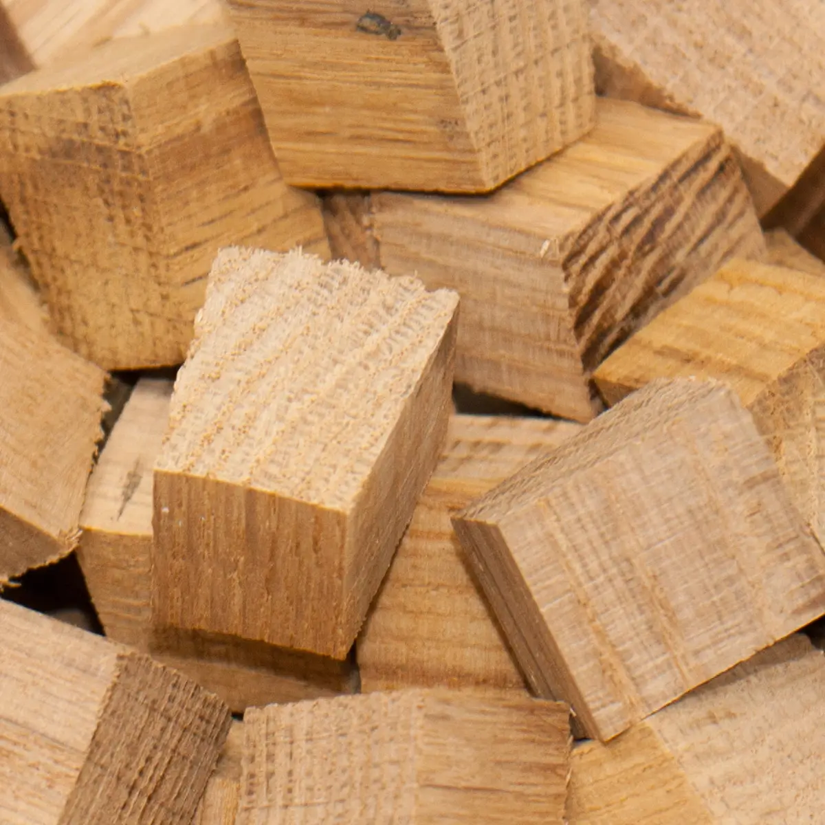 Nos cubes en bois issus de bois particuliers sont extrêmement intéressants, tant pour l'industrie de l'alcool que pour les distillateurs. Les cubes en bois de mûrier offrent un fort potentiel de coloration dorée. Les cubes d'acacia apportent des notes fines et fraîches d'herbes et de melon miel. Nos cubes de châtaignier font ressortir des arômes de miel foncé, tandis que le frêne assure une maturation équilibrée, sans déperdition de couleur. Une tendance croissante, similaire à celle des fûts, est l'utilisation de bois provenant d'une pré-exploitation. Nous fabriquons nos cubes dans notre propre tonnellerie et utilisons exclusivement des fûts fraîchement vidés. Le bois de chauffe, qu'il s'agisse de whisky, de bourbon, de sherry, de cognac ou de rhum, a pénétré profondément dans les douves des fûts, ce qui permet aux cubes d'être richement imprégnés des arômes correspondants. Ce sont surtout les brasseurs de bière et les distillateurs qui utilisent volontiers ces produits alternatifs pour leurs bières et leurs distillats.