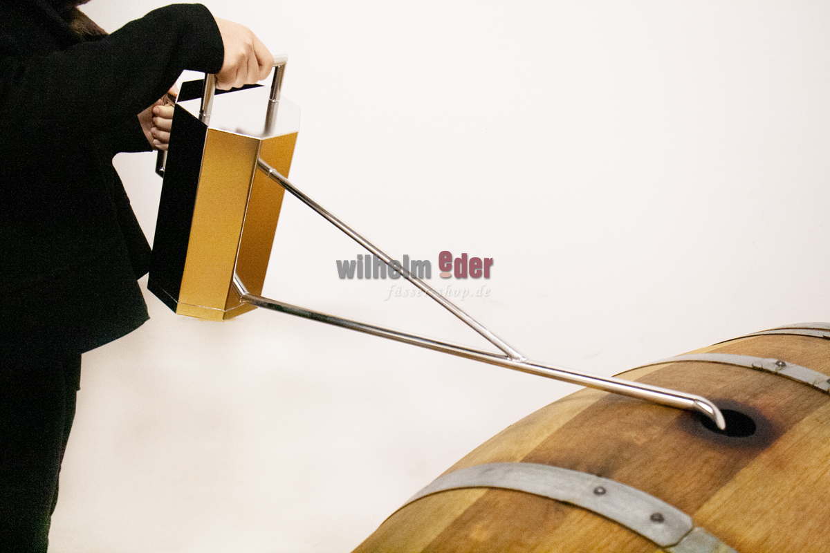 Il est équipé d'un bec de 72 cm de long pour faciliter le remplissage, même lorsque les fûts sont empilés les uns sur les autres.