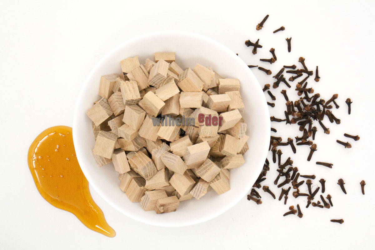 Fortement chauffés, les cubes ou coupeaux donnent des arômes fumés forts et lardés.