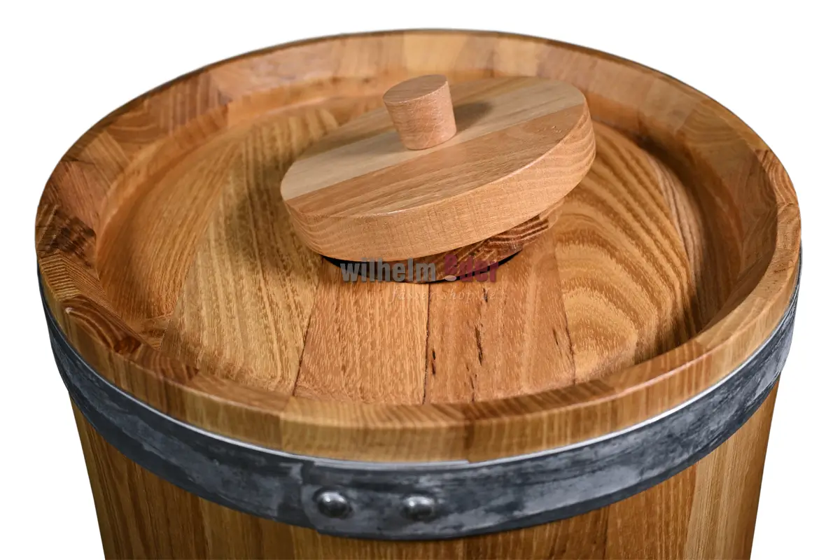 Ces cuves à vinaigre de fabrication traditionnelle en acacia / robinier des plus fins n'attirent pas seulement le regard dans votre production, votre vente ou votre maison, mais reflètent également le retour à l'originalité et aux produits de qualité. Les récipients en acacia ne servent pas uniquement à conserver le vinaigre, le vinaigre balsamique ou les aliments fermentés, mais leur confèrent également une structure et une profondeur gustatives accrues grâce au toastage des douelles intégrées.