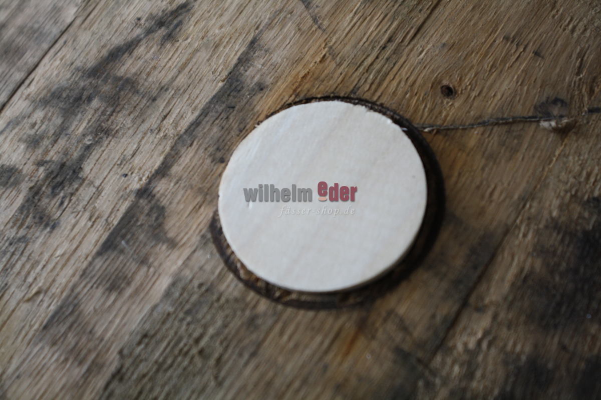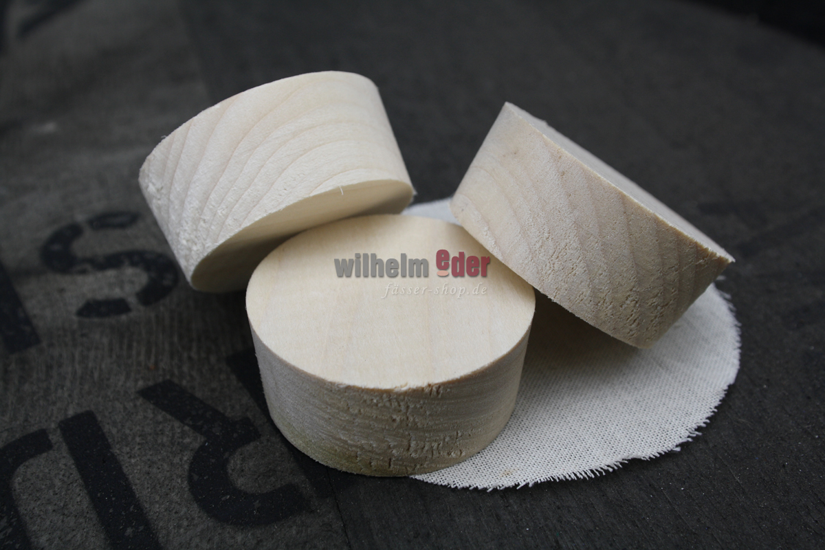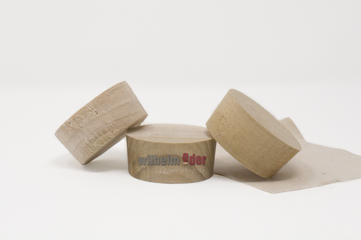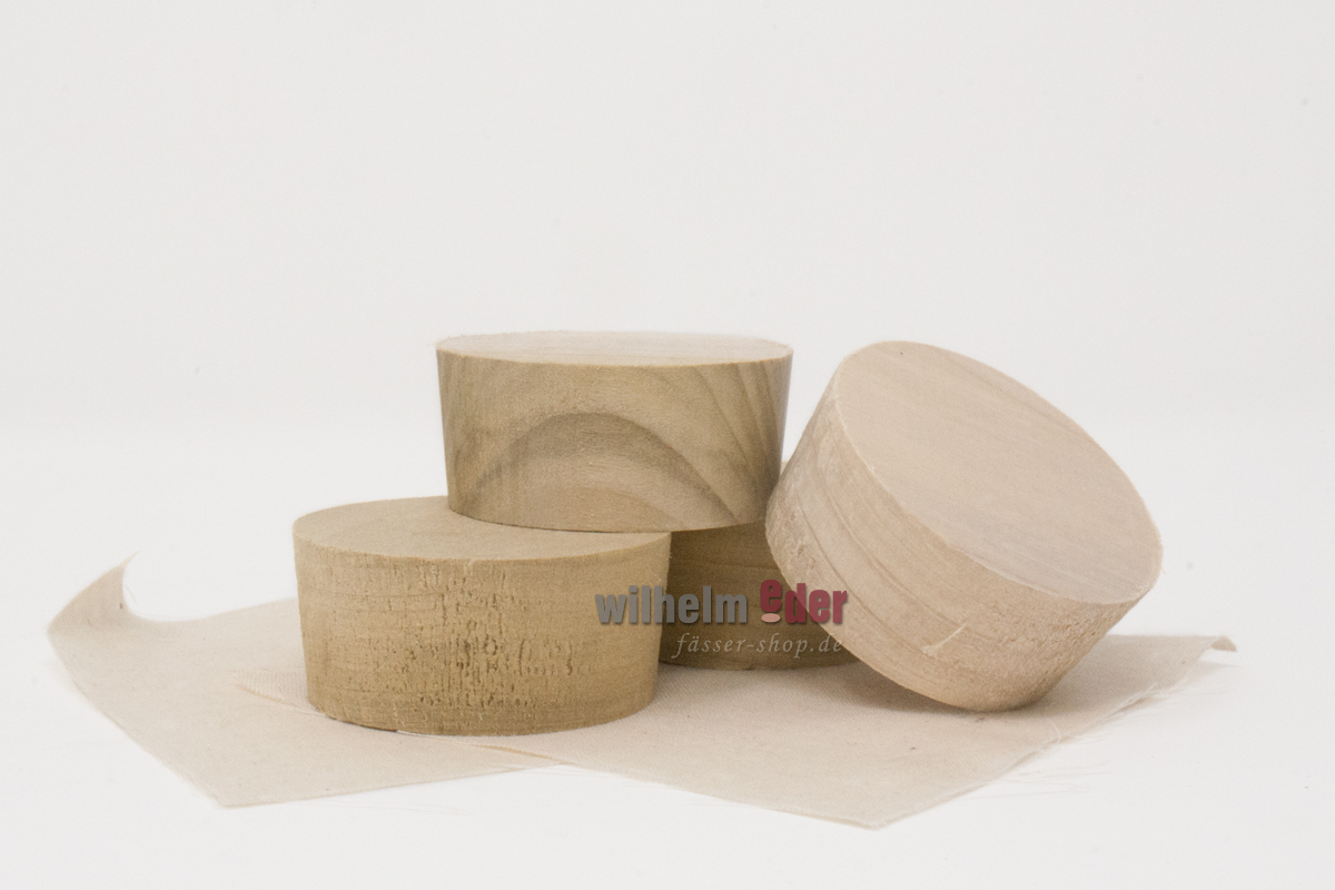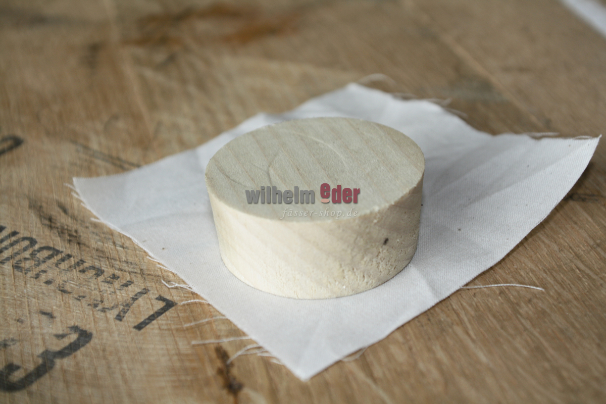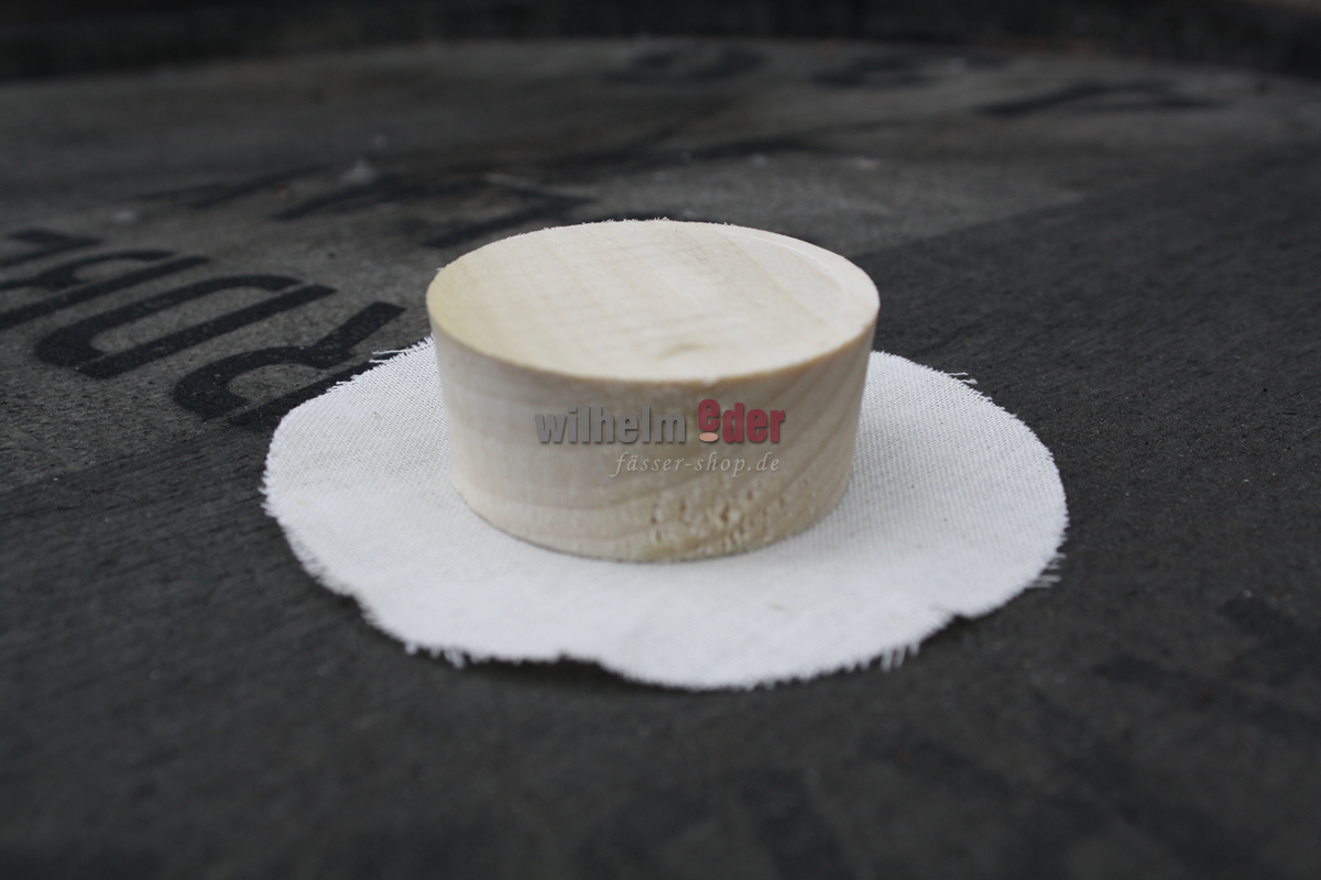 Disque-bonde en bois de peuplier avec torchon de toile pour fermer un trou de bonde d’environ 45mm des fûts à distillat – pour rouler les tonneaux remplis.