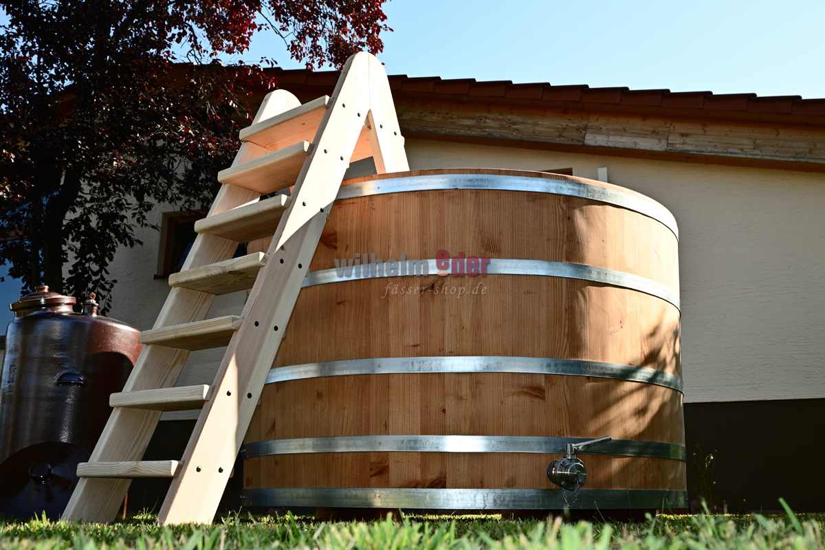 L'illustration montre une échelle pour une baignoire ronde de 2 500 litres.
