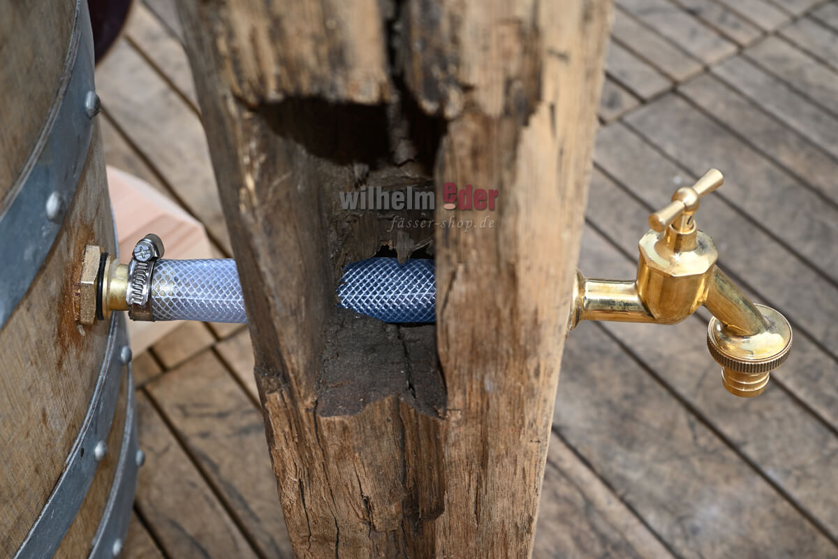 Chaque écoulement pour tonneaux d'eau de pluie "Zapfstelle" est unique et peut présenter différentes entailles dans le bois et décolorations.