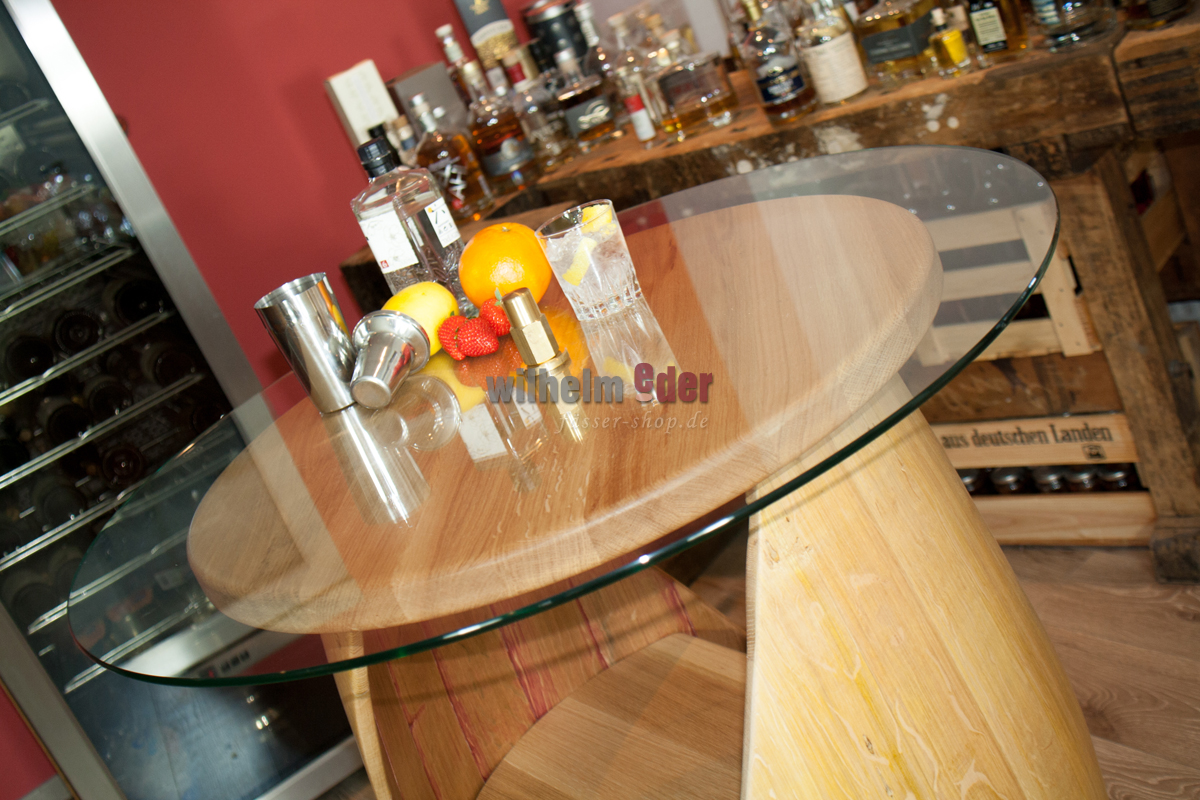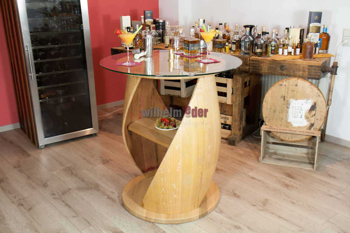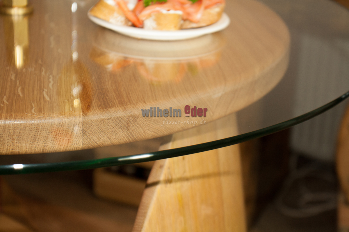 Avant la fabrication des étagères, nous laissons sécher les fûts et collons les douelles individuellement. Ce procédé élaboré assure la stabilité de la table et empêche le bois de se déformer sous l'effet des variations de température. Veuillez noter, cependant, que l'air de chauffage trop sec et chaud n'est pas bon pour le fût.