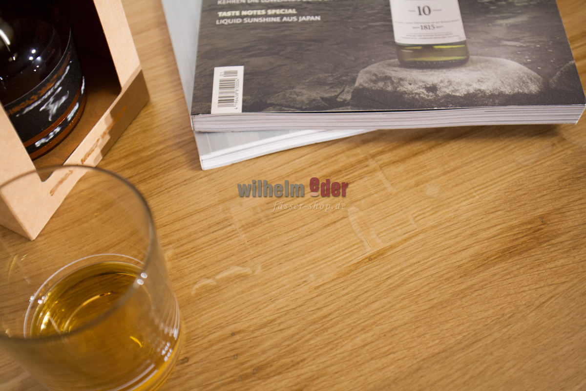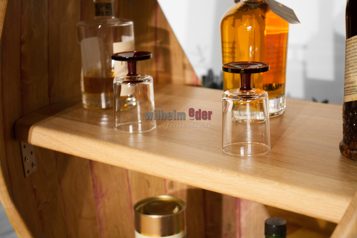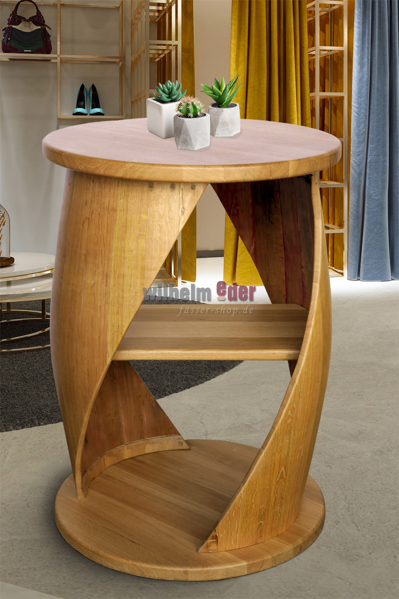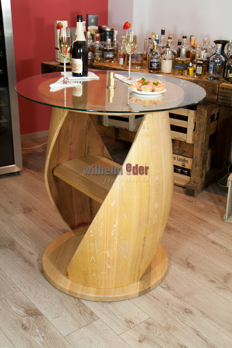 Avant la fabrication des étagères, nous laissons sécher les fûts et collons les douelles individuellement. Ce procédé élaboré assure la stabilité de la table et empêche le bois de se déformer sous l'effet des variations de température. Veuillez noter, cependant, que l'air de chauffage trop sec et chaud n'est pas bon pour le fût.