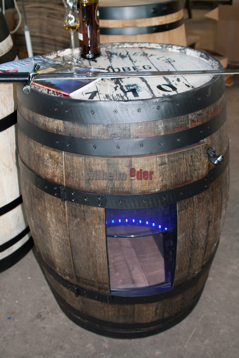 Ces fûts sont équipés d'une étagère qui est également fabriquée d'un couvercle d'un ancien fût Single Malt !