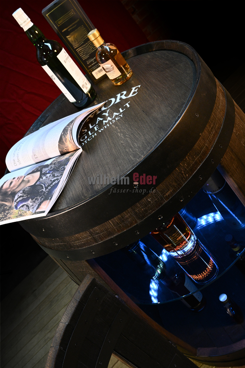 Cette étagère a été fabriquée d'un fût original Hog Shead de 250 l ayant contenu du Single Malt.