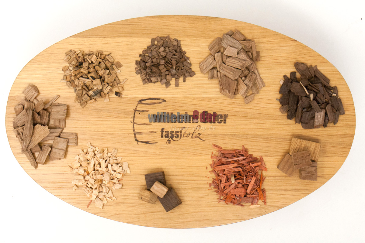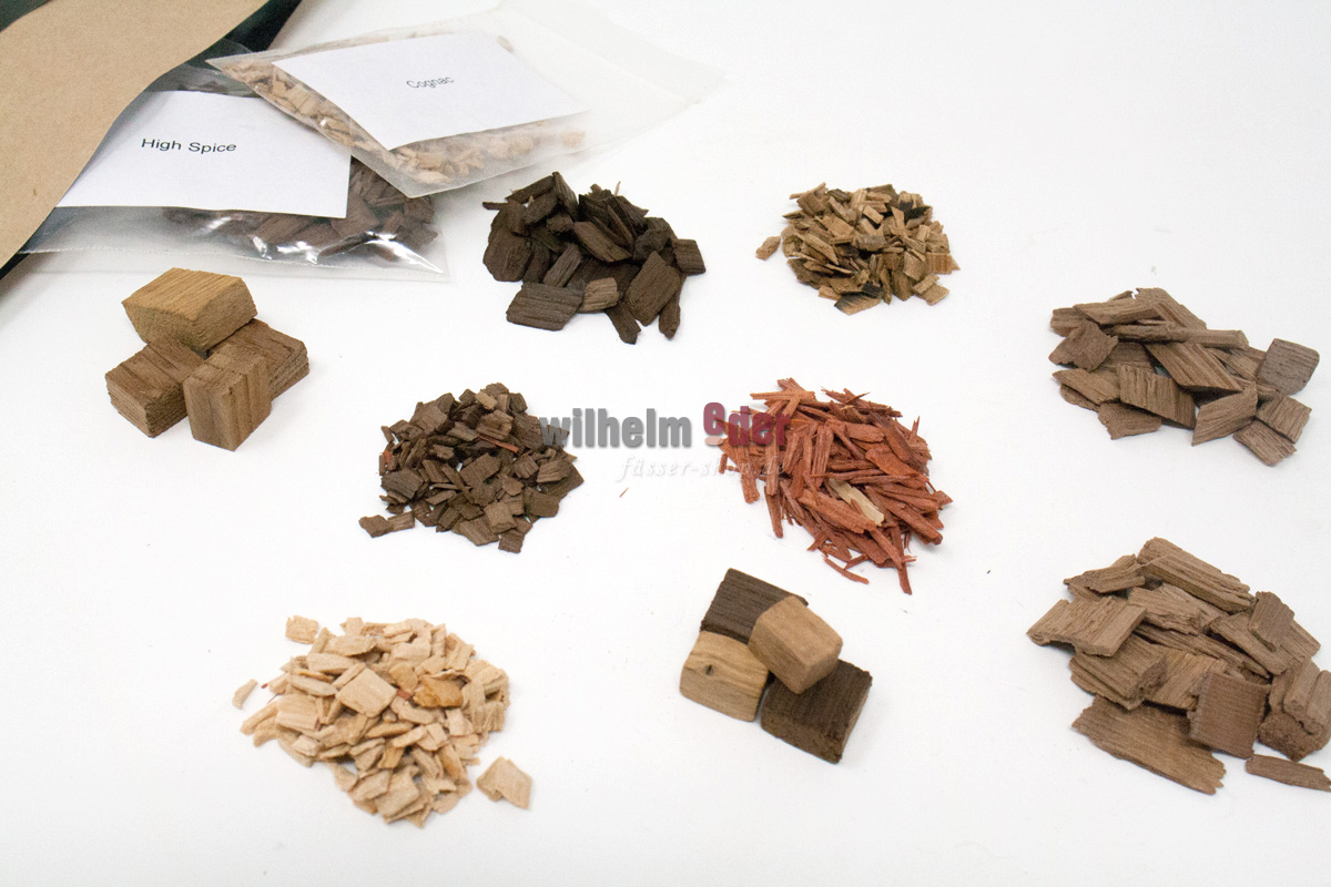Nous vous composons dix différents échantillons d'alternatives de bois (Chips et/ou cubes) pour que vous puissiez tester les différentes sortes de bois, tailles et bousinages.