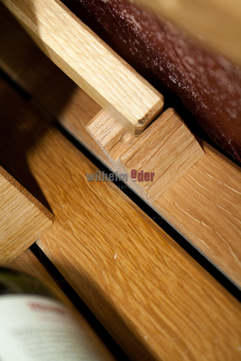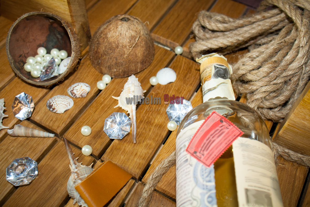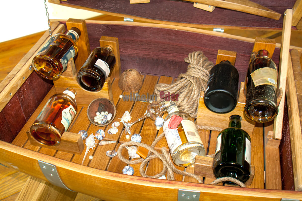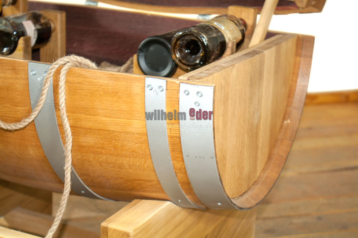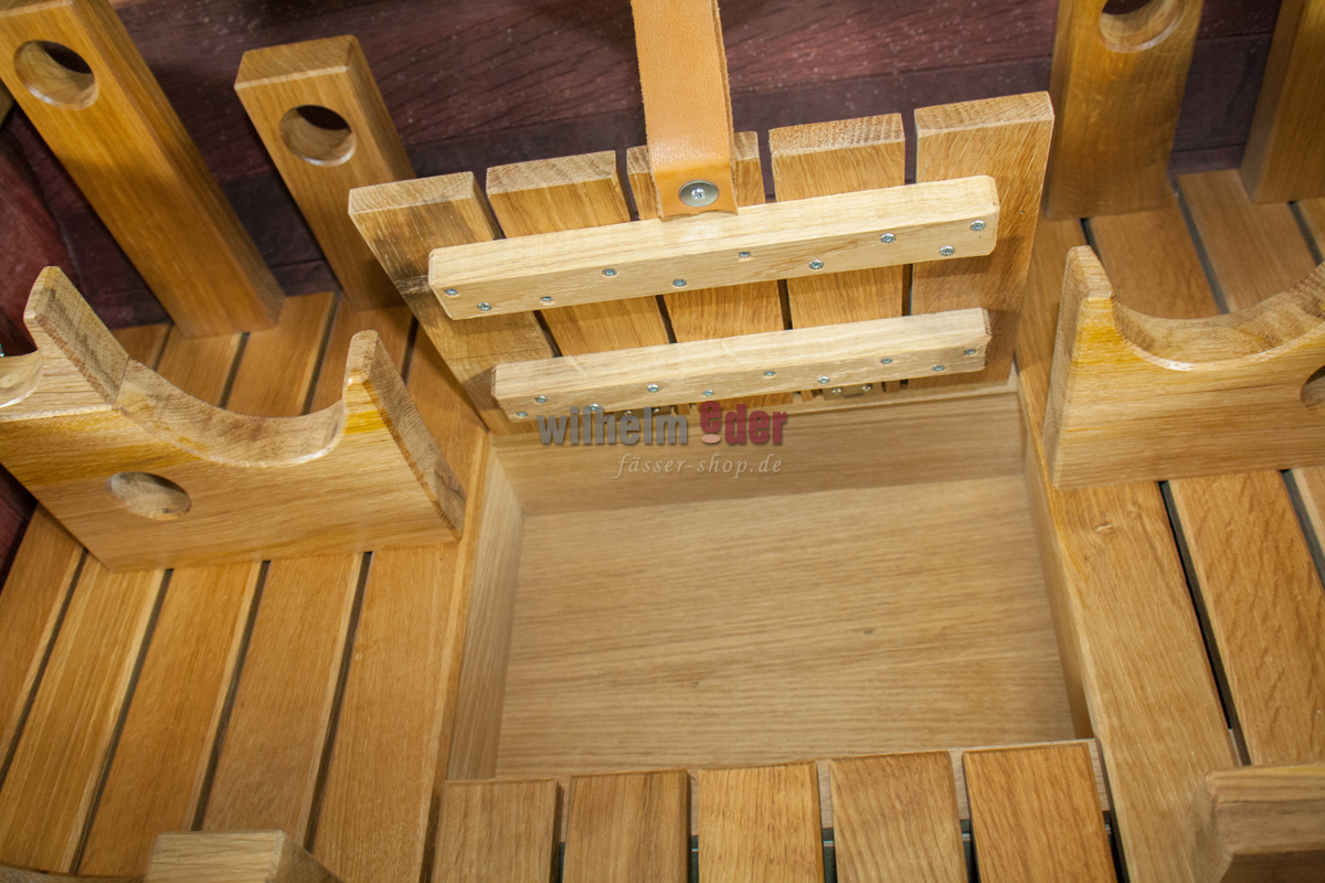 Nous fabriquons le coffre au trésor de notre série de meubles FassStolz® dans notre propre menuiserie de tonneaux. La base est un tonneau de 225 l qui a été nettoyé, collé, poncé et huilé ou verni selon les souhaits du client.