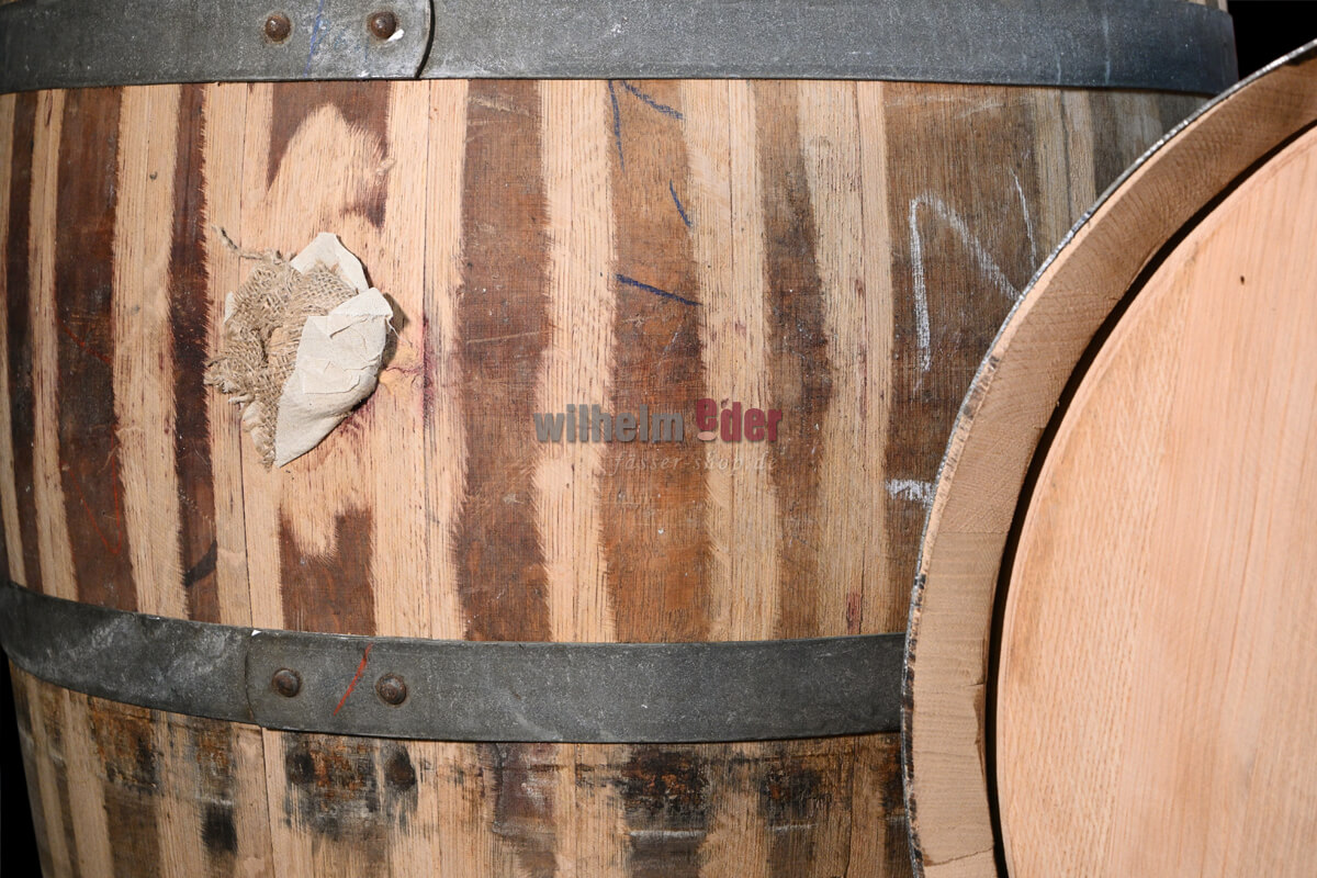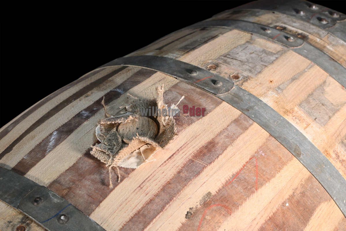 Fûts en bois ayant contenu du liquide : Des encoches dans le bois, fissures extérieures dues aux contraintes ou éventuellement un fond irrégulier ne sont pas un défaut de qualité mais plutôt des caractéristiques de bois qui viennent des particularités de la construction et l’usage antérieur des fûts. Ceci ne réduit pas la fonctionnalité du fût. Nous contrôlons soigneusement les fûts lors de contrôle de sortie pour détecter les défauts sensoriels et techniques. Nous n'assumons aucune responsabilité pour les fissures qui se produisent pendant la maturation. Une réparation possible et significative n'est pas un service de garantie.