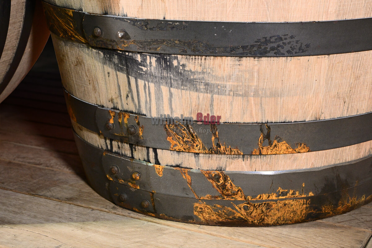 Fûts en bois ayant contenu du liquide : Des encoches dans le bois, fissures extérieures dues aux contraintes ou éventuellement un fond irrégulier ne sont pas un défaut de qualité mais plutôt des caractéristiques de bois qui viennent des particularités de la construction et l’usage antérieur des fûts. Ceci ne réduit pas la fonctionnalité du fût. Nous contrôlons soigneusement les fûts lors de contrôle de sortie pour détecter les défauts sensoriels et techniques. Nous n'assumons aucune responsabilité pour les fissures qui se produisent pendant la maturation. Une réparation possible et significative n'est pas un service de garantie.