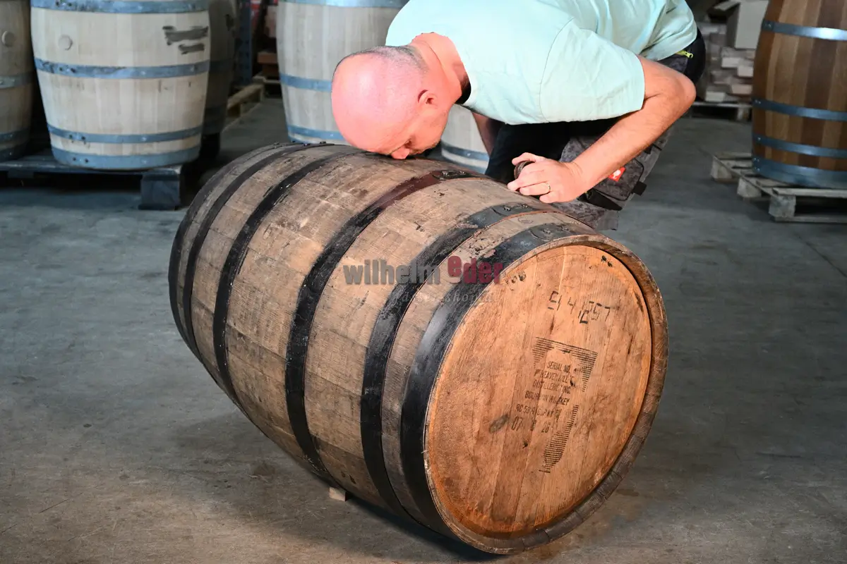Fûts en bois pré-utilisés : les entailles dans le bois, les fissures de tension extérieures ou, dans certaines circonstances, un fond inégal ne sont pas des défauts de qualité, mais sont plutôt déterminés par la particularité de la construction et l'utilisation antérieure des fûts. La fonctionnalité du fût n'en est pas affectée. Lors du contrôle de sortie, nous examinons très soigneusement les fûts pour vérifier qu'ils ne présentent pas de défauts sensoriels ou techniques. Nous n'assumons aucune responsabilité pour les cracks ou les fissures qui apparaissent pendant la maturation. Une réparation éventuelle et raisonnable n'est pas une prestation de garantie.