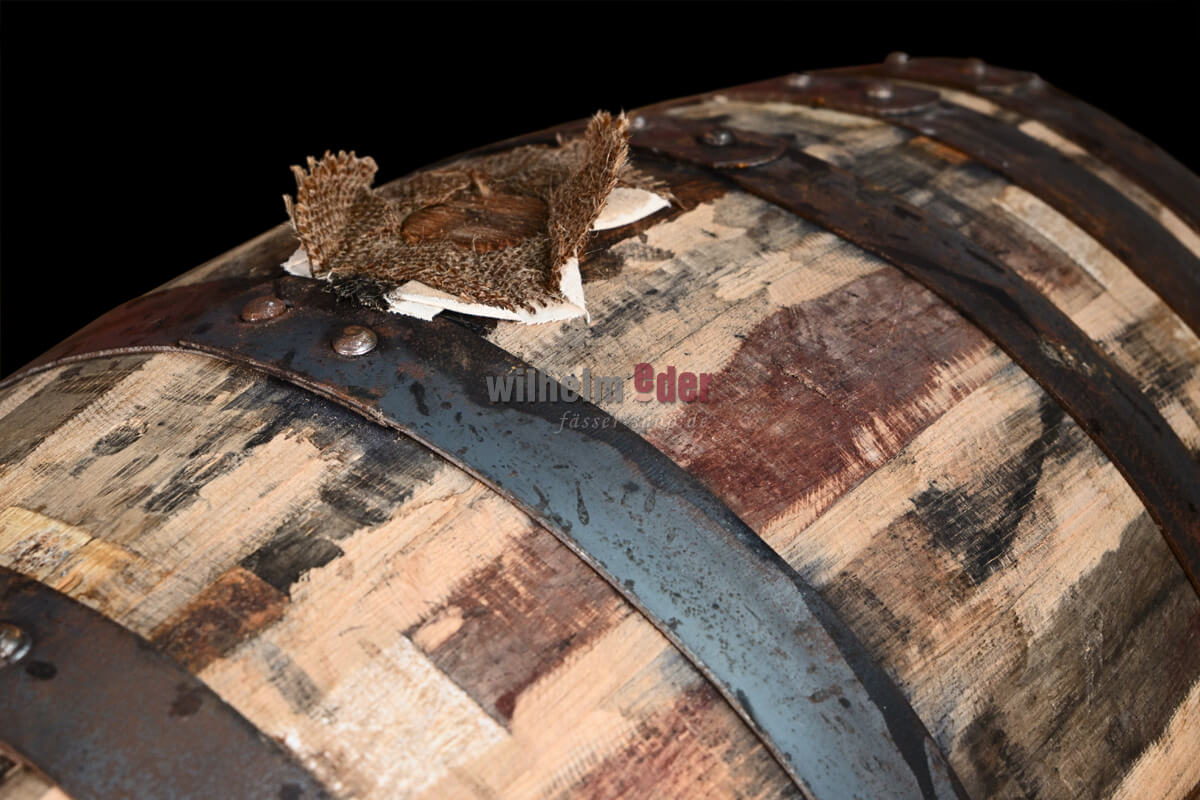 Fûts en bois ayant contenu du liquide : Des encoches dans le bois, fissures extérieures dues aux contraintes ou éventuellement un fond irrégulier ne sont pas un défaut de qualité mais plutôt des caractéristiques de bois qui viennent des particularités de la construction et l’usage antérieur des fûts. Ceci ne réduit pas la fonctionnalité du fût. Nous contrôlons soigneusement les fûts lors de contrôle de sortie pour détecter les défauts sensoriels et techniques. Nous n'assumons aucune responsabilité pour les fissures qui se produisent pendant la maturation. Une réparation possible et significative n'est pas un service de garantie.