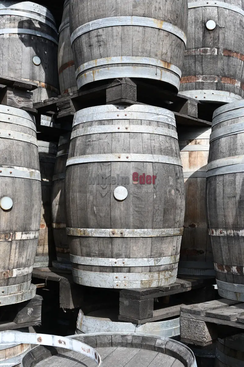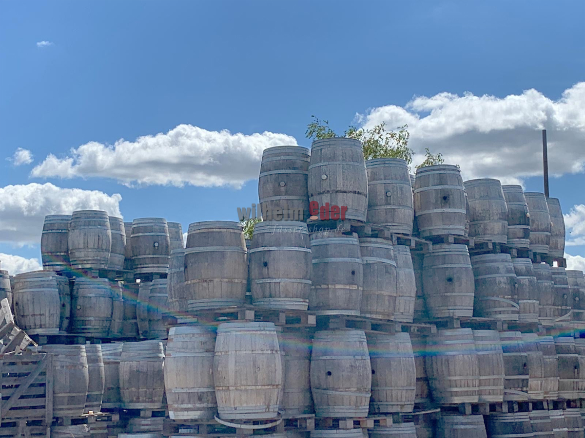 Les cercles des fûts (galvanisés ou noirs) présentent des traces de rouille, certains sont détachés ou manquants. Les fonds des tonneaux sont voûtés et les douelles des tonneaux présentent des fissures ou des fractures dues à la tension - l'étanchéité ne peut donc pas être garantie.