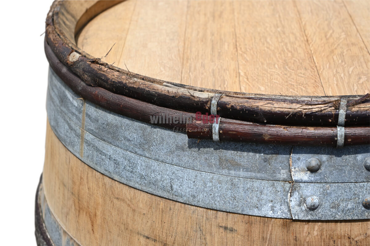 Très belle barrique d'occasion claire de 225 l en bois de chêne avec des traces de vin rouge de premier choix, équipée de cercles galvanisés. Les tonneaux peuvent très bien être utilisés comme table haute, comme décoration ou comme présentoir. Les pneus galvanisés sont en partie recouverts d'un peu de rouille volante et le fût convainc par son aspect naturel et clair. Les fûts sont techniquement en bon état, mais ne sont plus adaptés à l'usage alimentaire. Avant d'être expédiés, ils sont nettoyés à haute pression et les pneus sont solidement fixés. Certains fûts sont équipés d'un verrou transversal dans la tête.