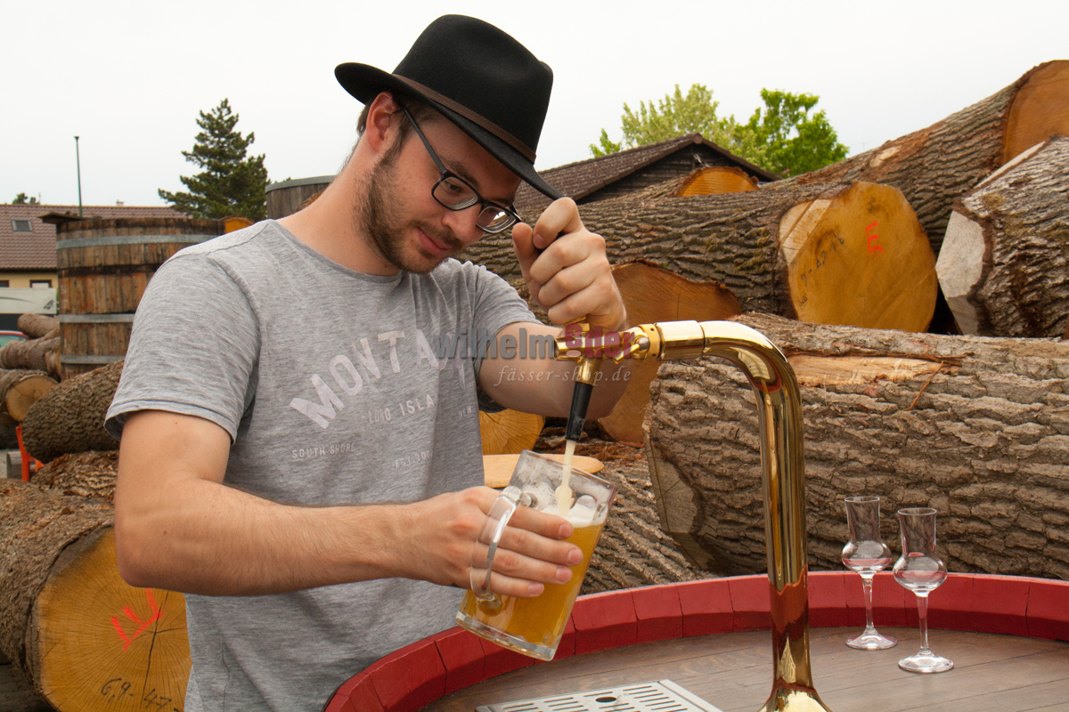 Notre menuisier nous a construit un fût pour tirer la bière d’un fût décoratif de 600l. Ce fût fait accélérer le cœur de chaque amateur de bière.