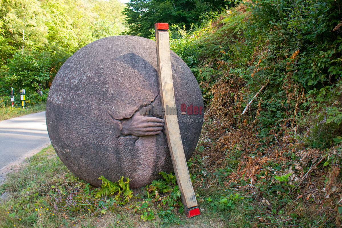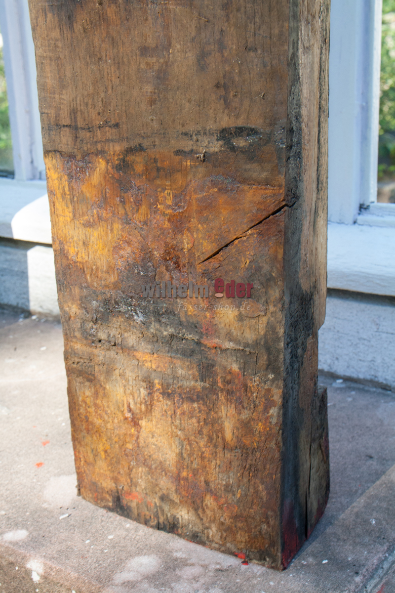 Produit à partir d'une douelle de tonneau provenant d'un ancien grand tonneau de vin rouge, Longueur d'environ 1500 à 1600 mm. Un support métallique nostalgique pour une lanterne est fixé à la douelle. La lampe peut être placée indépendamment d'une source d'énergie. La douelle du tonneau est nettoyée, poncée et huilée. Visuellement légers mais toujours stables, nous montons et fixons la douelle du canon sur une plaque de grès ronde d'un diamètre de 600 mm. Livraison avec lanterne