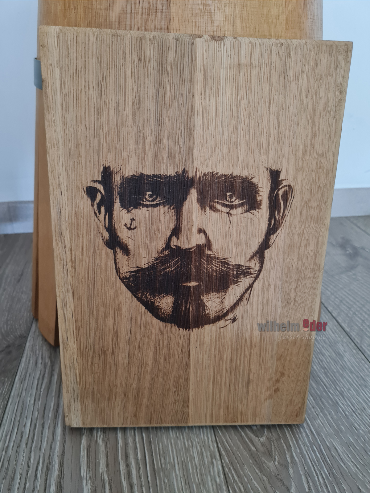 Nous gravons au laser votre logo individuel ou votre écriture ou nom sur la face avant ou la face ventrale d'un fût.