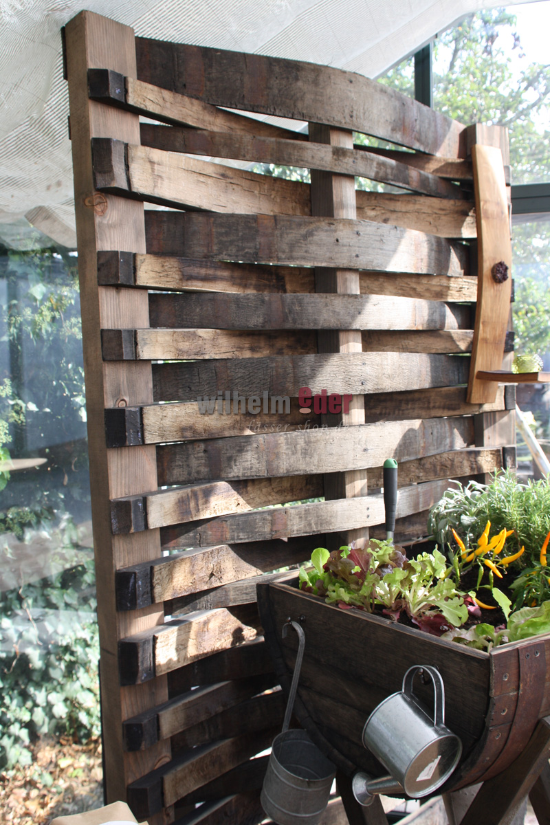 Informations sur le produit "Paroi pare-vue fabriqué d'anciennes douelles de fûts de whisky"
