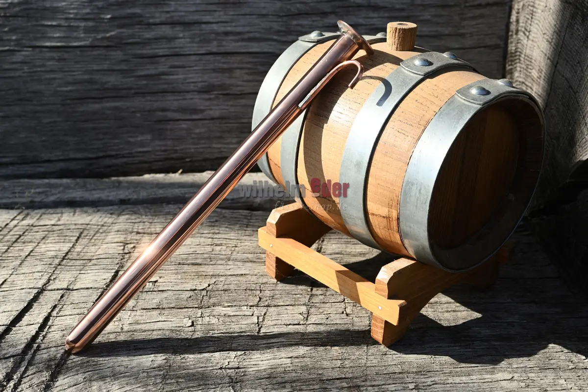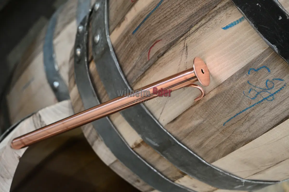 Pipette en cuivre fabriqué à la main pour prélever des échantillons de distillat dans les fûts en bois.