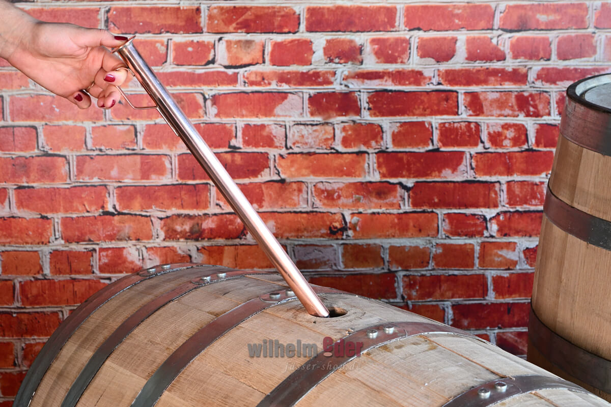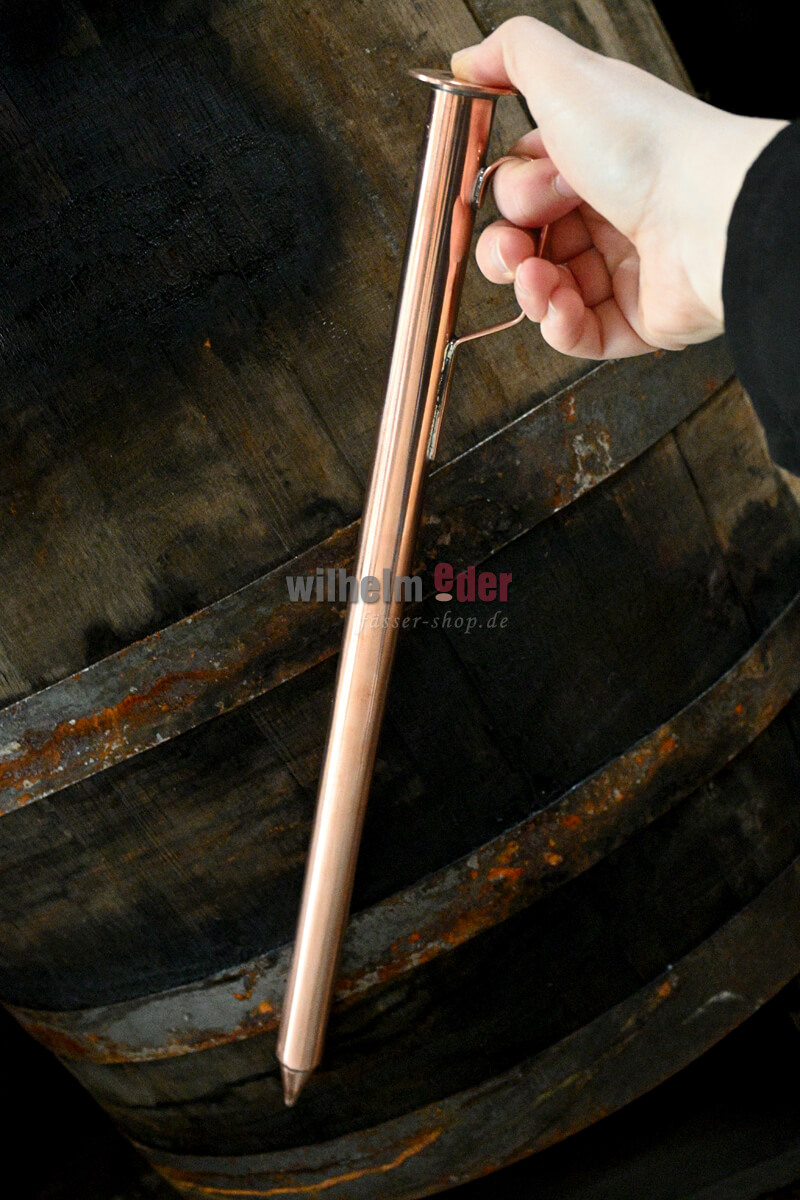 Pipette en cuivre fabriqué à la main pour prélever des échantillons de distillat dans les fûts en bois.