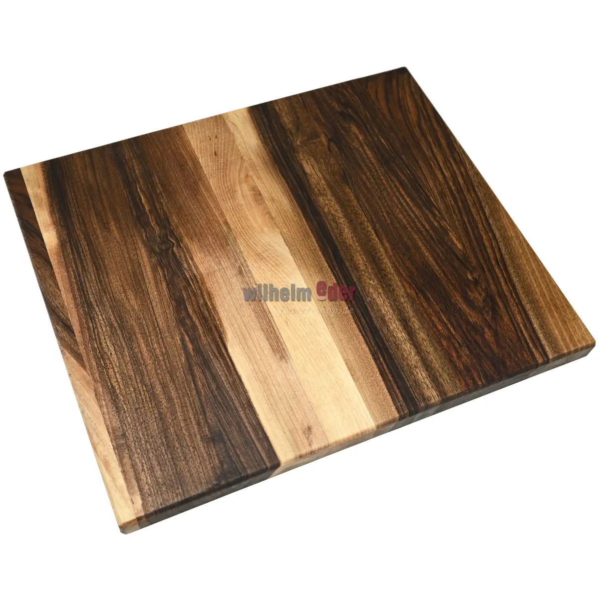 Lavez brièvement la planche à l'eau chaude si vous y avez mis de la viande transformée, du poisson, des oignons, etc. Veuillez la laver des deux côtés, sinon la planche risque de se déformer. Pour le séchage, veuillez le placer sur le bord et bien ventilé afin qu'il puisse sécher uniformément. Si des odeurs désagréables sont absorbées par la noix, vous pouvez les neutraliser avec un peu de bicarbonate de soude.