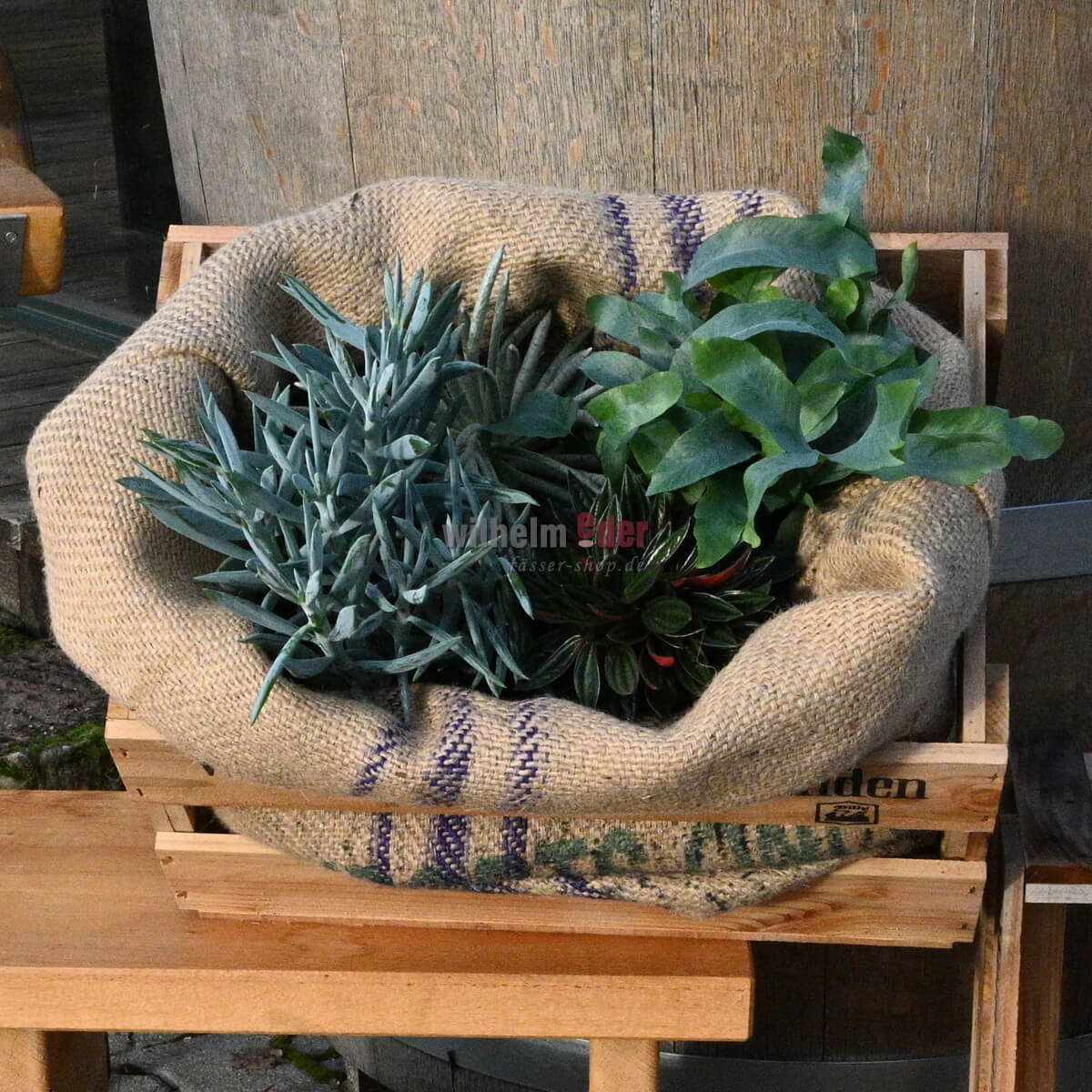 Les sacs à café originaux ne sont pas seulement charmants à l'extérieur, ils sont aussi très jolis à l'intérieur lorsqu'ils sont utilisés comme tapis de plantation. Les sacs servent à préparer les caisses à vin, les palettes ou d'autres récipients à plantes avec des ouvertures pour le printemps. D'une part, les sacs de café peuvent servir de récipient pour le terreau et stocker ainsi l'humidité, par exemple dans nos bacs à fleurs. Un réservoir d'humidité peut également être d'un grand soutien pour les jeunes arbres pendant les étés chauds. Pour ce faire, vous pouvez recouvrir la terre autour du tronc après l'avoir arrosé - un effet secondaire agréable est d'éviter que les mauvaises herbes ne poussent sur la surface recouverte. D'autre part, en automne et en hiver, votre plante peut également trouver une protection contre le froid sous les sacs.