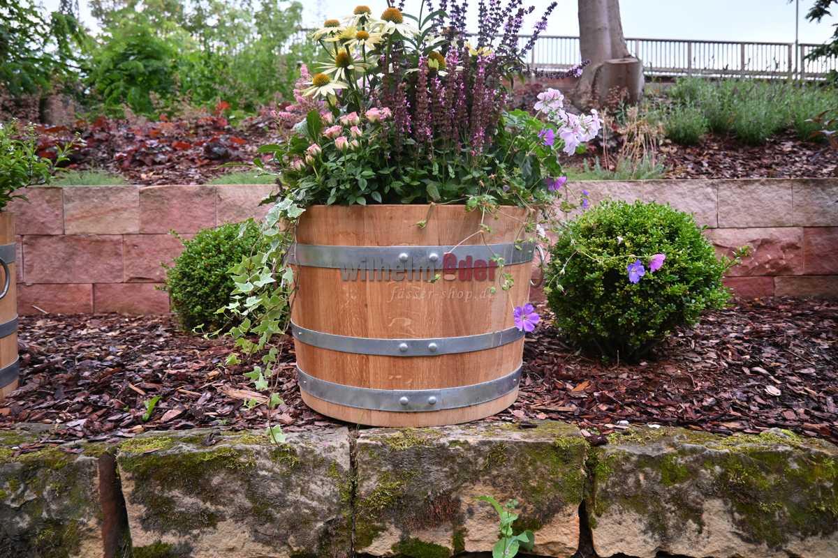 Les cuves robustes sont constituées de bois de chêne séché, appelé douelles. Ce bois de chêne provient de la forêt du Palatinat et est certifié PEFC. Le PEFC garantit que les produits en bois proviennent de forêts gérées durablement. PEFC est la plus grande institution visant à garantir et à commercialiser la gestion durable des forêts par le biais d'un système de certification indépendant.