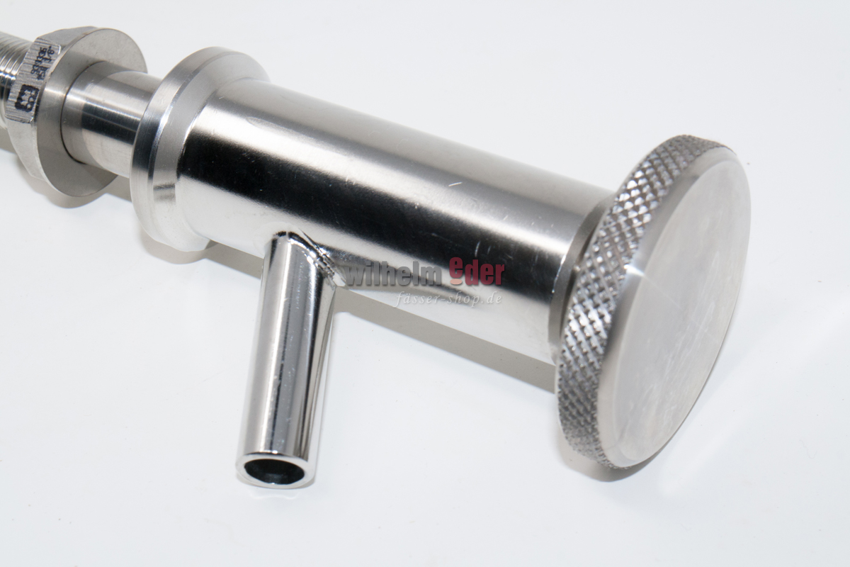 Choisisse la variante  convenante dans la liste de sélection. Soupape de prélèvement d’échantillon pour des fûts de grande taille. Déjà installée avec un contre-écrou à l’intérieure et un grand disque U à l’extérieure.