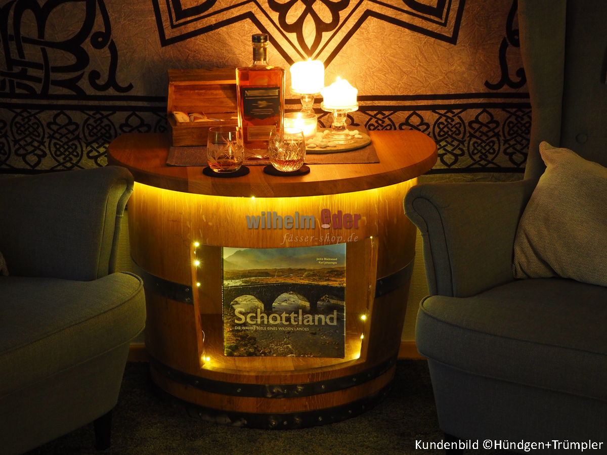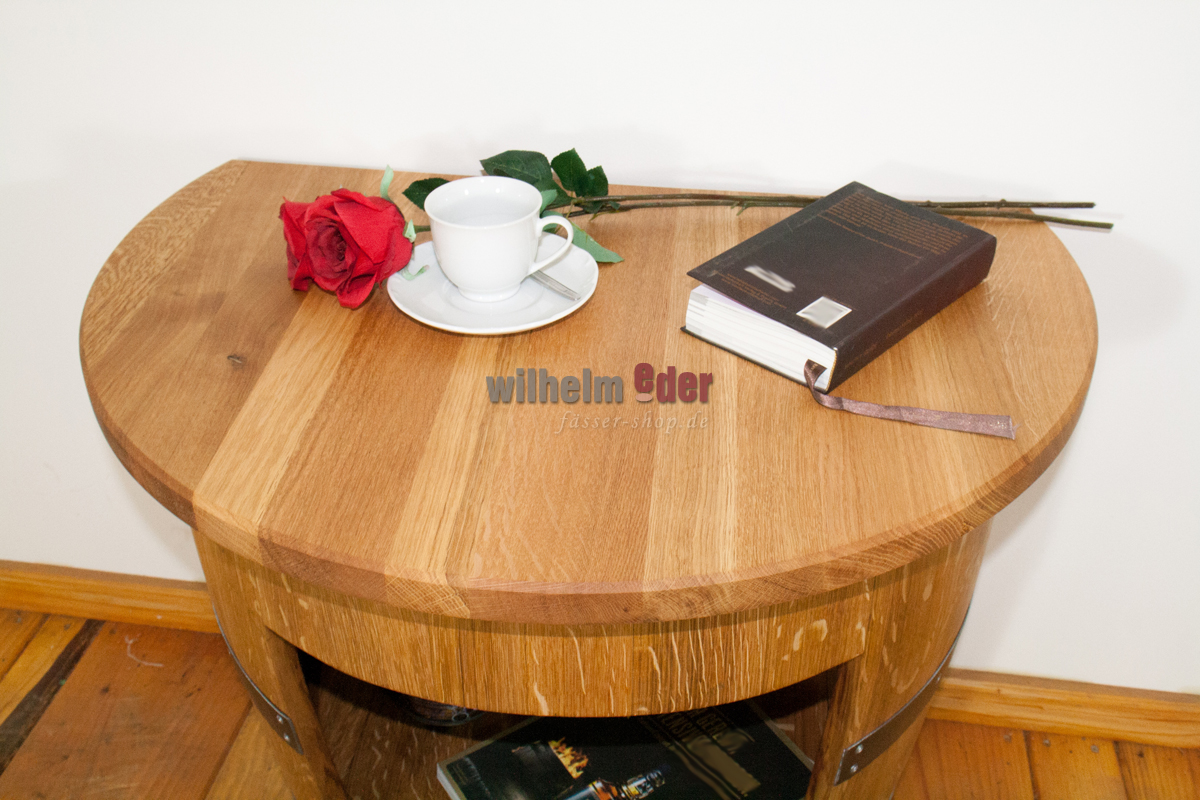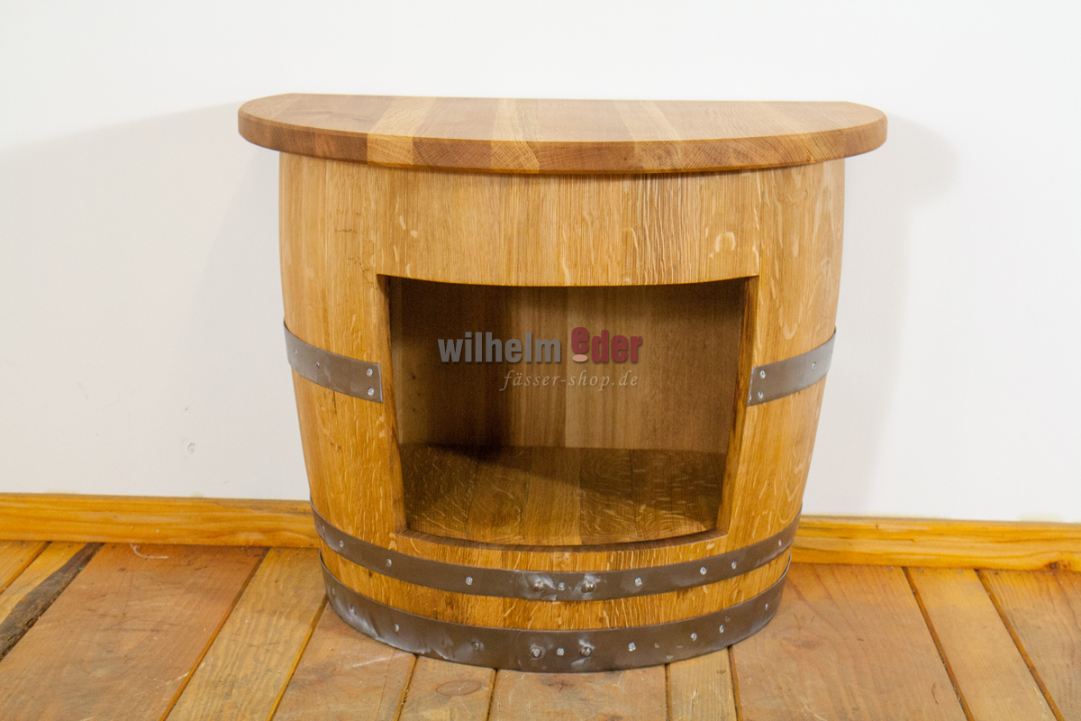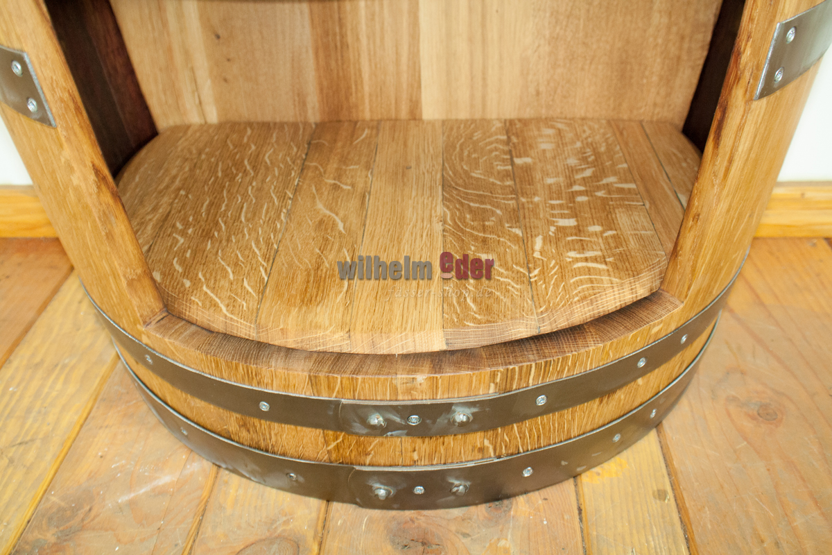 Tablette exclusive, fabriquée à partir d'un fût de vin usagé de 225 l, qui a été transformée en ce grand meuble dans un travail artisanal élaboré.