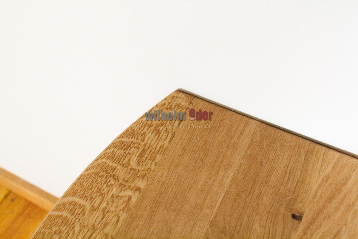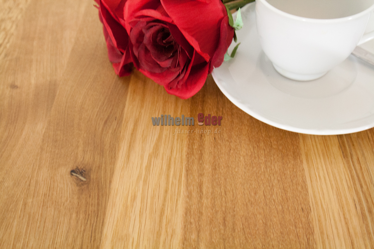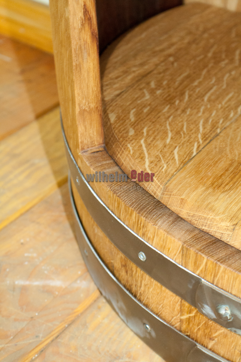Le baril a été nettoyé, séché, collé et finement poncé par des professionnels. Ensuite, le tiers supérieur du canon a été coupé pour atteindre une hauteur finale d'environ 58 cm pour la table.