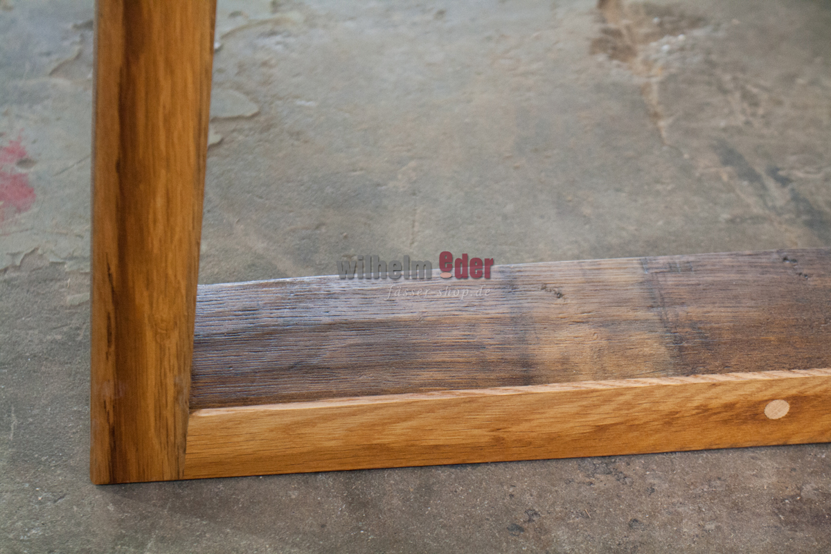 La conception du cadre du pied a été réalisée avec des douelles originales des conteneurs précédents afin d'assurer l'originalité et l'authenticité.