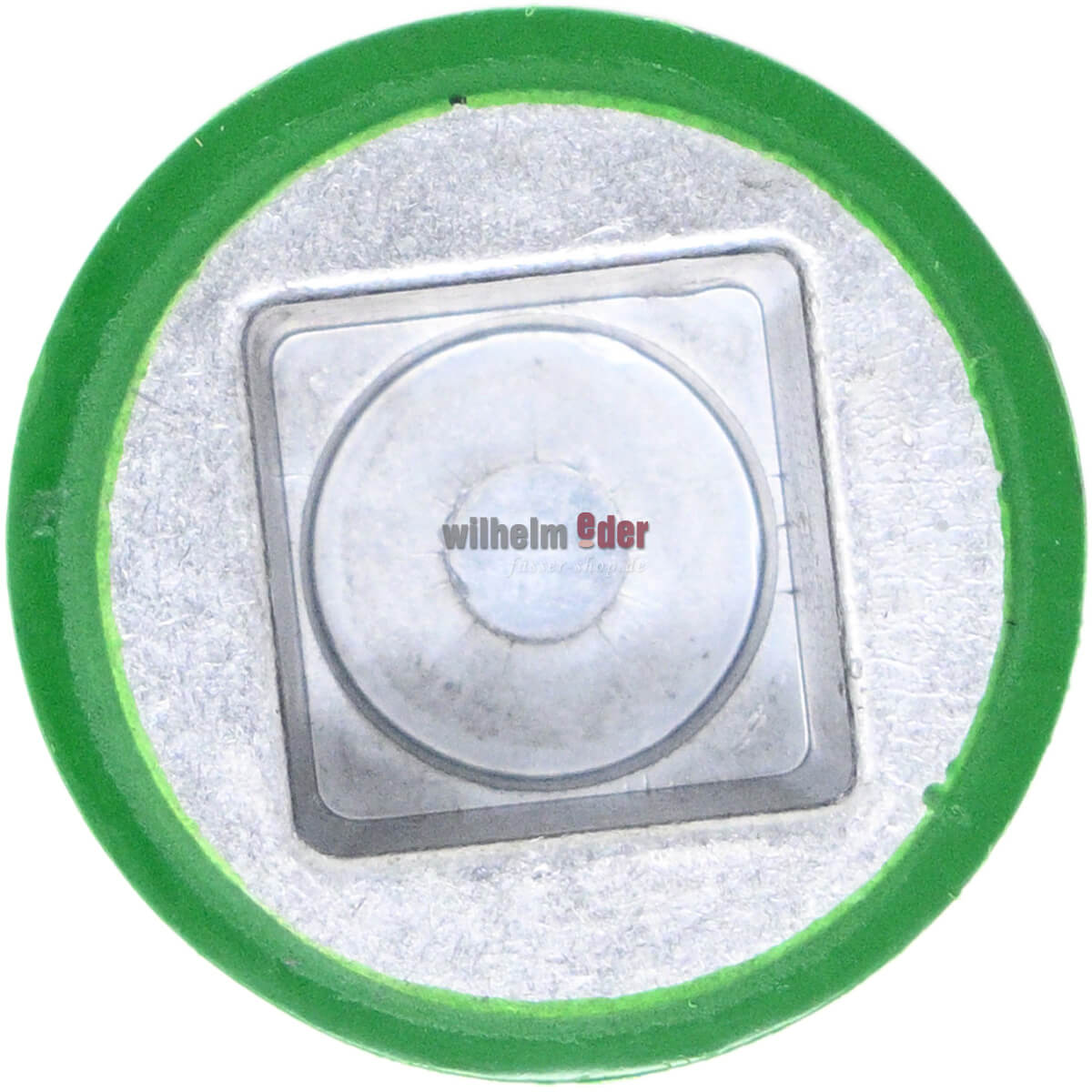 Le vis est fait pour le grand trou avec fil. La vis est équipée d'un insert carré en aluminium et d'un revêtement en plastique vert. Elle assure l'étanchéité sans languette de bonde supplémentaire.